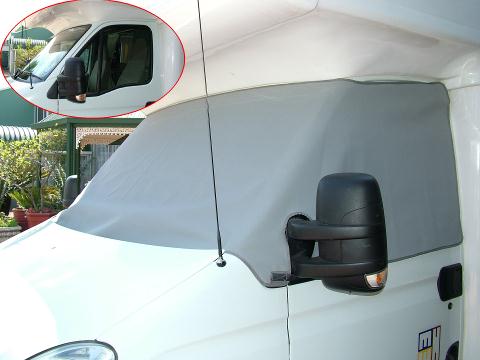 We manufacture a heavy duty PVC or RIP-STOP windscreen cover with a soft backing liner. The liner reduces abrasion related chafing. This cover acts as a sun protector and a privacy + security cover preventing unwanted attention inside the cab. The cover also features internal connection points, preventing it from being stolen. FEATURES Security cover Sun protector Privacy MAKES: IVECO, MERCEDES SPRINTER, FIAT DUCATO