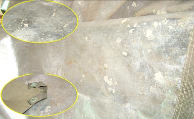 EXAMPLE of a fly sheet exposed to sea air, not dried nor cleaned prior to storage as prescribed. |