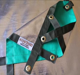Reflective Acrylic coating ONE SIDE to a RIP-STOP base. The THERMO-CRYLIC sheet is the most durable reflective sheet in our range. This does not have a foil laminate, but a reflective acrylic coating that cannot de-laminate in time as with laminated foils. 38-50mm Storm straps (webbing) sewn around edges. The Acrylic coating is not as highly reflective as our foil ranges and this sheet does give lower thermal reduction figures, but it is more durable than the reflective foil ranges. All webbing and storm strap designs are identical to the other ranges we manufacture.