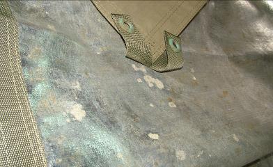 EXAMPLE of a fly sheet exposed to sea air, not dried nor cleaned prior to storage as prescribed. |